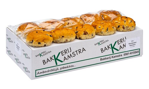 TARWEbloem, krenten (15.7%), Rozijnen (15.7%), water, bakkersgist, TARWEGLUTEN, dextrose, plantaardige olien (palm, raapzaad), WEIpoeder (MELK), bakkerszout, emulgator E471, E482, E472e, rijsmiddel E450/E500ii, kruiden en specerijen, TARWEmoutmeel, natuurlijk aroma, verdikkingsmiddel E412, curcuma-extract, enzym (TARWE), kan steentjes/ stokjes bevatten