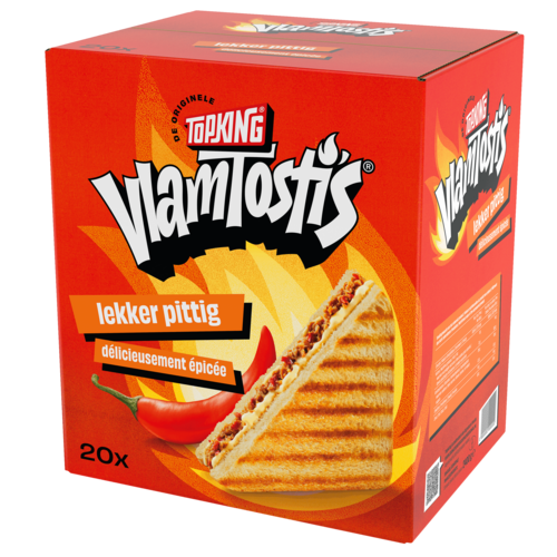 50% wit brood (tarwebloem, water, bakkerszout, bakkersgist), 25% kaas jong belegen 48 , 25% Vlammetjes®-vlees (20% varkensvlees, 1% Spaanse peper, suiker, wortel, paneermeel [bevat tarwe], zout, water, plantaardige vezel, specerijen, kruid, tarwebloem, antioxidant (E301, citroenzuur), emulgator (E464), gistextract, azijn, zuurteregelaar (citroenzuur))