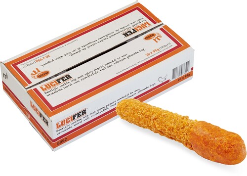 De mora lucifer is een pikante kipsnack met mals kippenvlees in een krokant korstje. hij heeft een pikant smakende kop en ziet eruit als een lucifer. licht ontvlambaar, aanstekelijk lekker! heerlijk als snack bij de maaltijd.