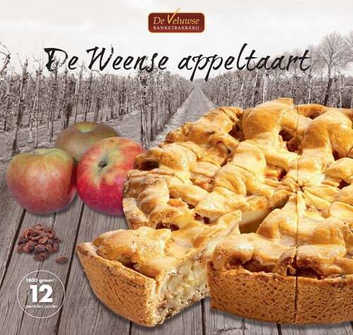 49% appel, tarwebloem, suiker, plantaardige oliën (palm, raapzaad), water, kippenEI, rozijnen, gemodificeerd zetmeel (mais,aardappel), glucose-fructosestroop, tarwezetmeel, glucosestroop, specerijen, zout, rijsmiddelen: E500/E503, stabilisator: E422, zuurteregelaars: E330/E331, citroenschil, vitamine A en D, emulgator: E471, kleurstof: E160b, geleermiddel: E440, natuurlijke aroma