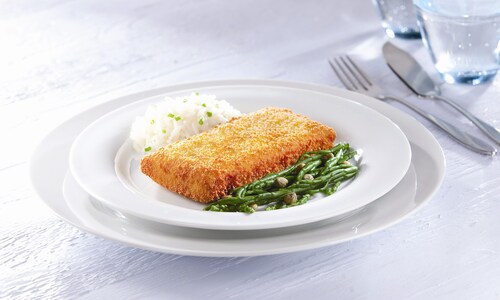 60% Alaska Pollak (VIS), paneermeel (TARWEbloem, zout, kruiden), koolzaadolie, meel (TARWE, MAÃS), water, gemodificeerd TARWEzetmeel, zout, rijsmiddel: E500, weipoeder (MELK), stabilisator: E412