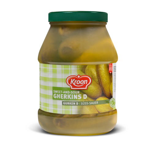 Augurken, water, natuurazijn, suiker, zout, natuurlijk kruiden aroma, zoetstof: saccharine, kleurstof: riboflavine