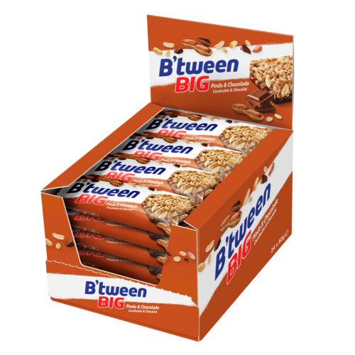 24% geroosterde pinda's, 20% melkchocolade (suiker, cacaomassa, cacaoboter, magere melkpoeder, botervet, emulgator (zonnebloemlecithine)), glucose-fructosestroop, 15% geroosterde volkoren graanvlokken (haver, tarwe), granencrispies (tarwemeel, suiker, rijstmeel, maïsmeel, gerstmout, zout, karamelsuikerstroop), glucosestroop, suiker, cornflakes (maïs, zout, gerstmoutextract), kokosvet, honing, karamelsuikerstroop, emulgator (zonnebloemlecithine)