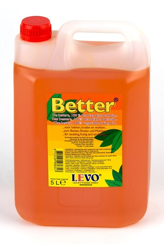High oleic zonnebloemolie, palmoleine, raapolie, kleurstof (betacaroteen), boteraroma, antischuimmiddel: E900