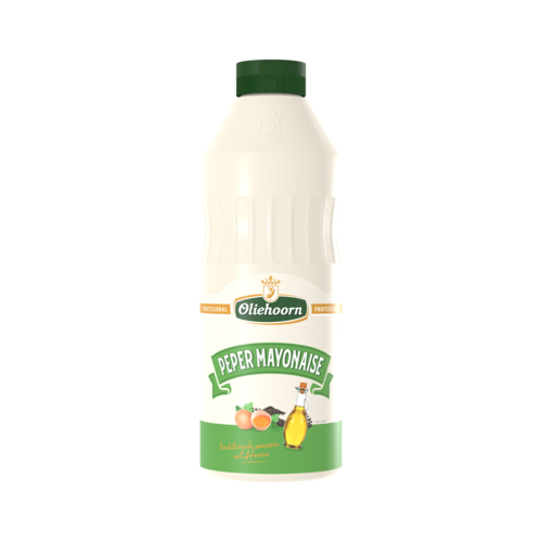 Ingrediënten: 70% raapolie, water, 6% scharreleigeel, suiker, azijn, zout, 0,9% gebroken zwarte peper, mosterd (water, mosterdzaden, azijn, zout, suiker, kruiden), 0,3% witte peper, verdikkingsmiddel (xanthaangom), antioxidant (E385)