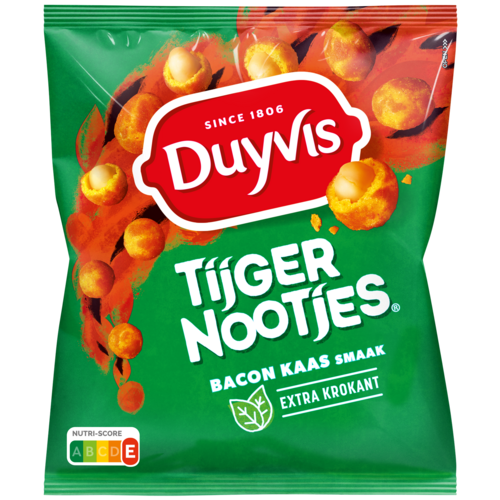 Ingrediënten: PINDA'S (38%), rijstebloem, zetmeel (van TARWE en maïs), zonnebloemolie, suiker, bacon- en kaassmaak [aroma's (van MELK), uienpoeder, kaliumchloride, knoflookpoeder, kaaspoeder (van MELK), voedingszuur (citroenzuur), rookaroma], zout, kleurstoffen (geconcentreerd bierenroodsap, curcumine). Deze verpakking kan (sporen van) verschillende soorten noten bevatten.