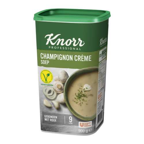 Ingrediënten: Gemodificeerd maÄszetmeel, roux (16,5%) (TARWEBLOEM, palmvet), palmvet, maltodextrine, zout, champignon (3,2%), gistextract, MELKSUIKER, maÄsolie, geconcentreerd champignonsap (2,5%), ui (2,1%), MELKEIWITTEN, MELKWEI, specerijen (knoflook, nootmuskaat, peper, kurkuma), aardappel- en ERWTENZETMEEL, rijstebloem, aroma's, citroensap. Kan ei en selderij bevatten.