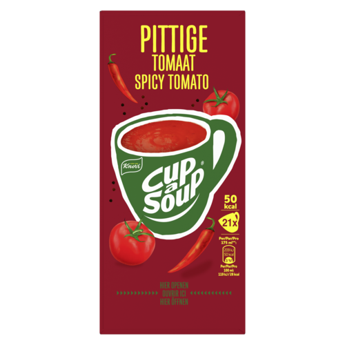Tomaat¹ 36%, aardappelzetmeel, dextrose, gistextract, suiker, zout, gejodeerd zout, aroma, mineraalzout (kalium), ui¹, citroensappoeder (citroensap, maltodextrine), specerijen (cayennepeper 0,5%, knoflookpoeder¹, peper), maïsolie, sojasauspoeder (maltodextrine, zout, sojasaus (SOJABOON, TARWE)), geconcentreerd groentensap¹ (KNOLSELDERIJ, wortel, ui, prei), fructose. Kan ei, melk, mosterd bevatten. ¹ op duurzame wijze geteeld.