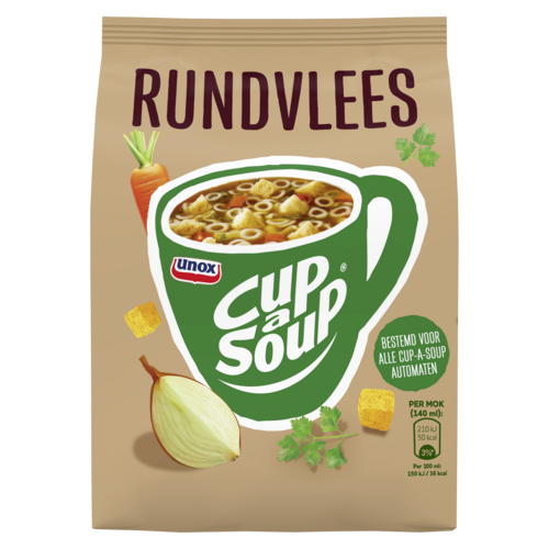 Ingrediënten: Maltodextrine, aardappelzetmeel, croutons 15% (witbrood (TARWEBLOEM, zout, gist, raapzaadolie), palmolie, antioxidant: rozemarijnextract), aroma, deegwaar 7,7% (harde TARWEGRIES, zout), palmvet, gejodeerd zout, suiker, wortel¹ 1,8%, ui¹ 1,5%, gistextract, zout, rundvleesextract 0,9%, kruiden¹ 0,5% (BLADSELDERIJ, peterselie). Kan ei, soja, melk, mosterd bevatten. ¹ op duurzame wijze geteeld.