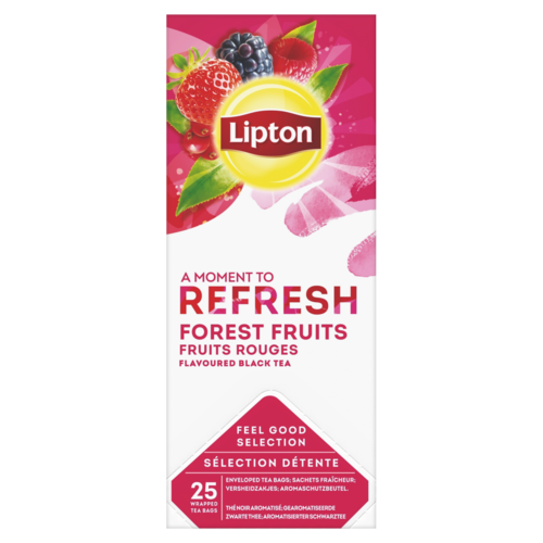 Zwarte thee [1], Aroma's 14%, maltodextrine, strawberry 0.5%, framboos 0.5%, braambes 0.5%, aalbes 0.5%, kers 0.1%. [1] Theeblend volledig RA (Rainforest Alliance)™ gecertificeerd