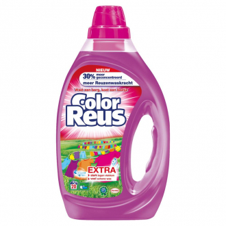 Wasmiddel voor de gekleurde was Color Reus is extra sterk tegen vlekken en je wast er extra veel was mee schoon. Dankzij de verbeterde reuzenfrisheid geniet je nog langer van een frisse was.