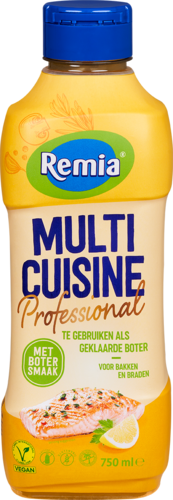 Remia multicuisine is een plantaardig vloeibaar bak- en braadproduct, verrijkt met de heerlijke smaak van boter. multicuisine kent veel voordelen; palmvrij, allergenenvrij, glutenvrij, lactosevrij én geschikt voor vegans. verpakt in 750ml tube.